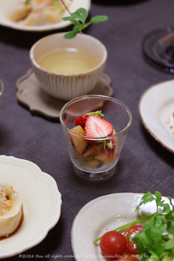 〆は、ルビーレッドキウイといちごであっさりと。
