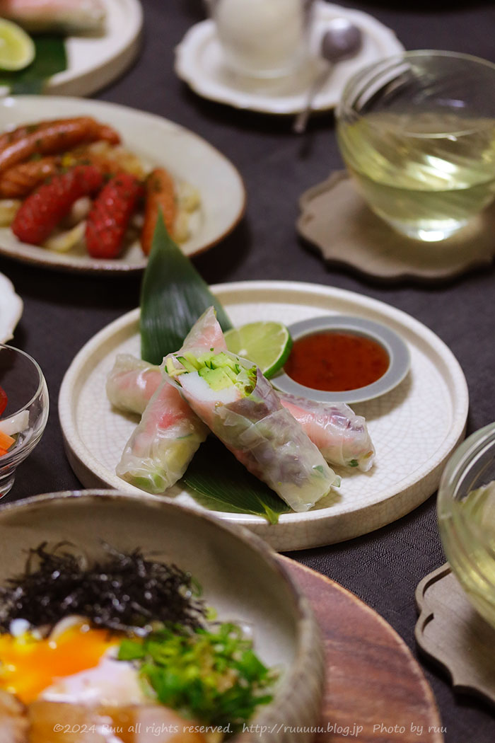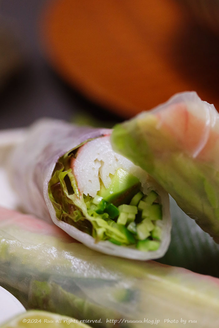 スケソウダラのすり身スティックとアボカドの生春巻き