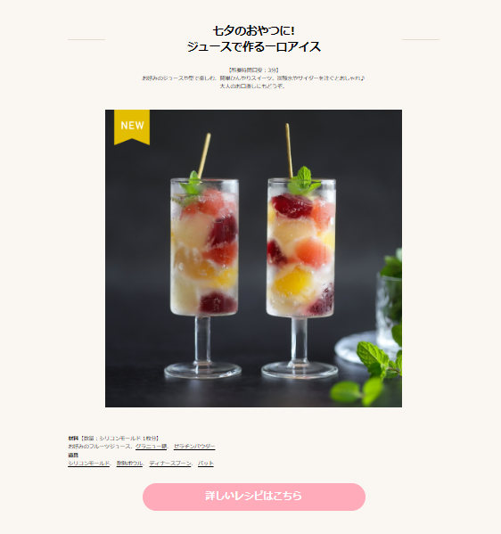 cottaさんのお仕事で作った七夕スイーツ、ジュースで作る夏の一口アイスのレシピだよ!