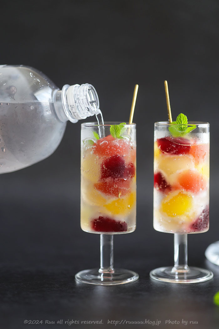 そのまま食べてもいいし、好みで炭酸水やサイダーを注いでも。