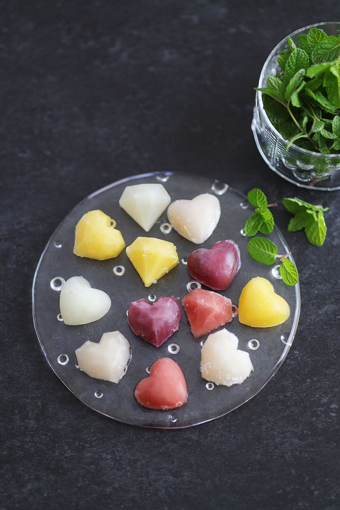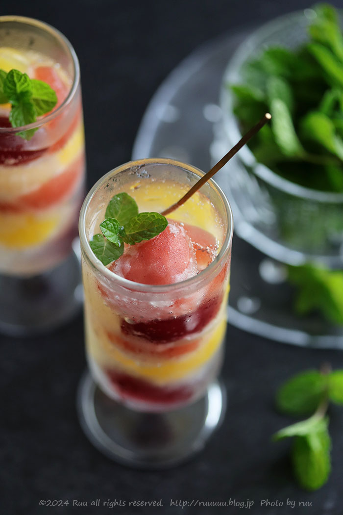 ジュースだけを冷やし固めると、シャリシャリっとした氷のような食感になりますが、