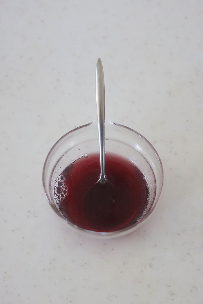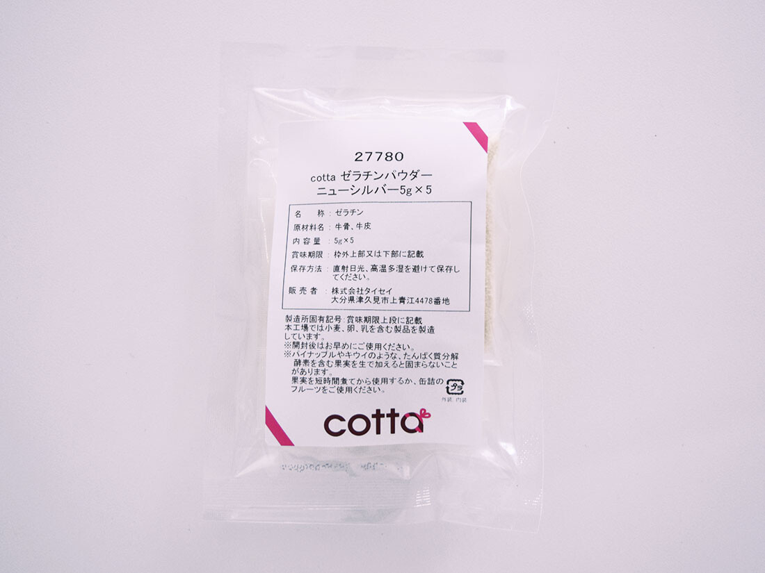 そして、通常、ゼラチンは水でふやかしてから加えますが、これは直接ふり入れられるタイプを使っているので、