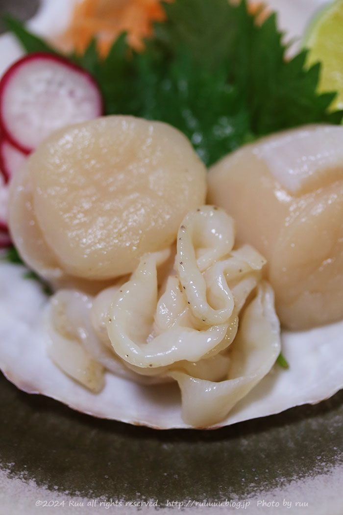 私「今時は冷凍ものも美味しくなったと思うけど、この活の食感は格別だよねえええええ!あと、ヒモのお刺身が食べれるのも活ほたてならでは!」