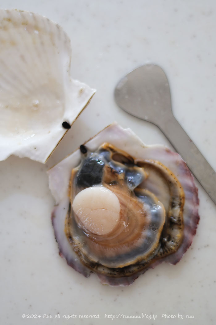 なぜならほたては、届いたらすぐにさばかないと、せっかくの活が死。