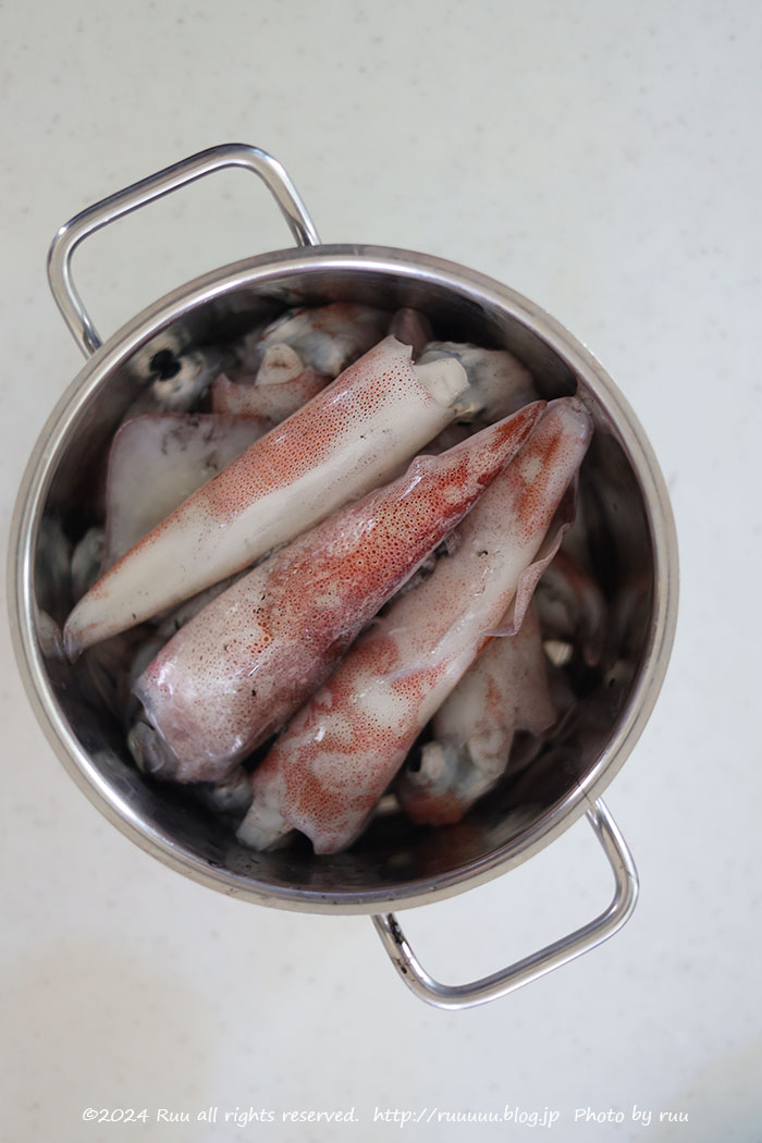 ヒモを塩で洗うか、包丁の背でぬめりをこそげとればできますんで!