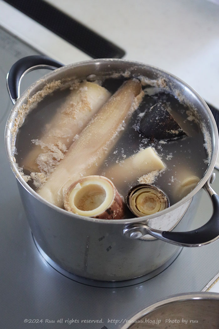 お味噌汁は友達からもらったたけのこの姫皮を使って、