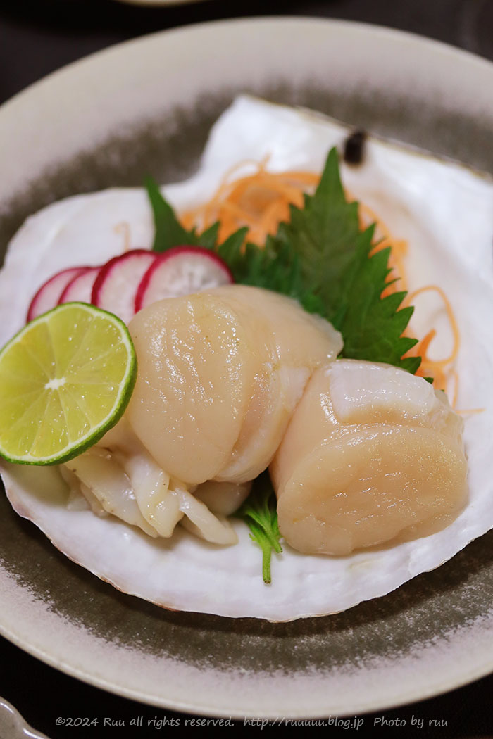 だって活ほたての到着日だもの、ここはお刺身で活きの良さを味わい隊!