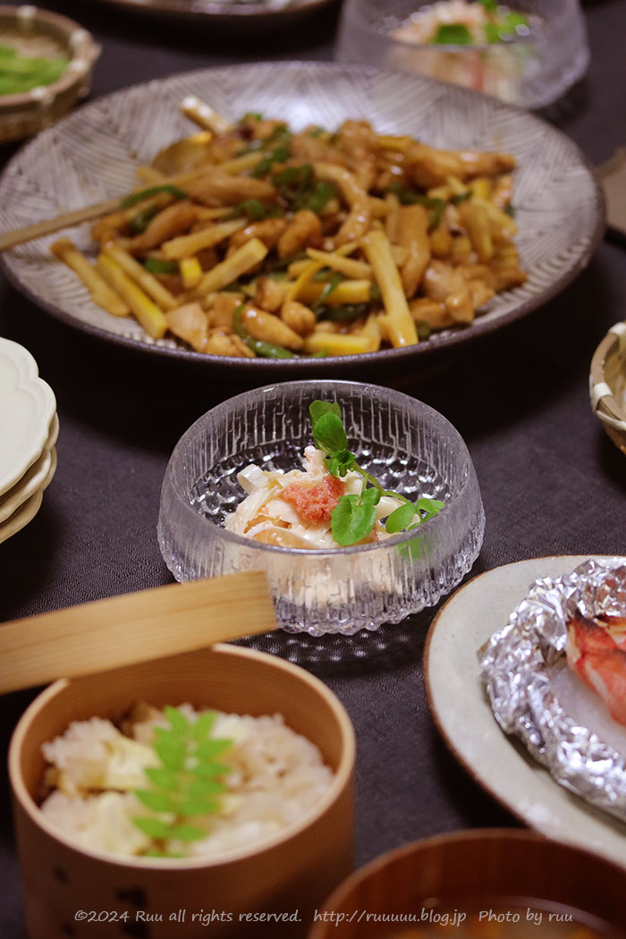 昨日はお出汁だけで炊き上げるjolijoliさん家風のたけのこご飯。