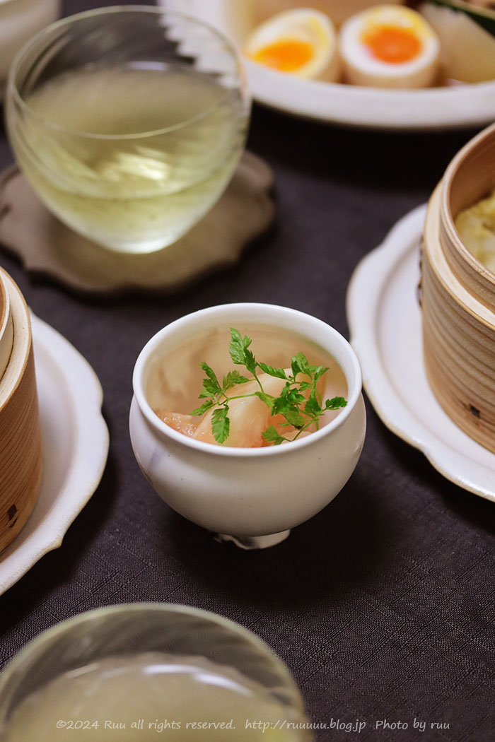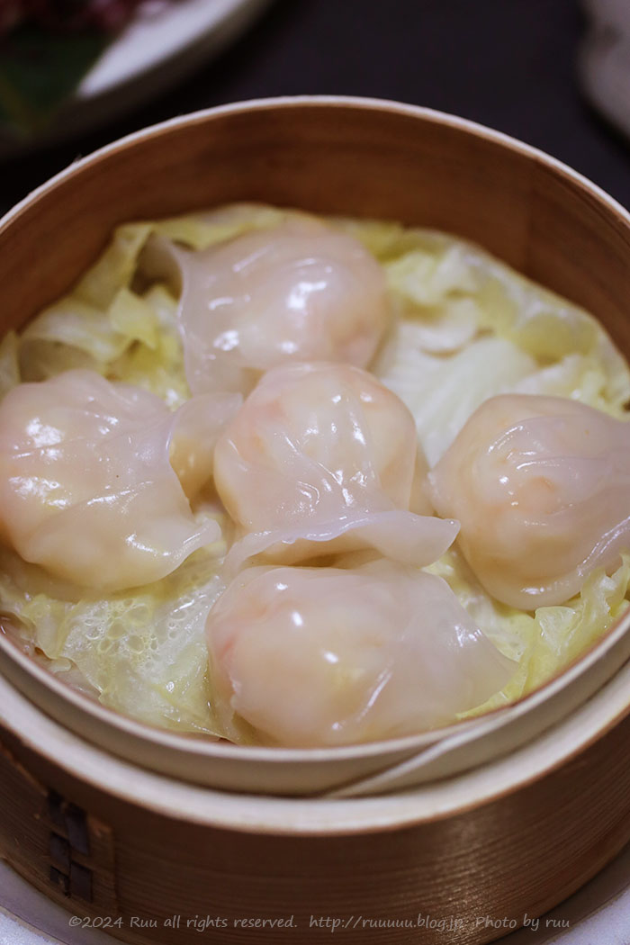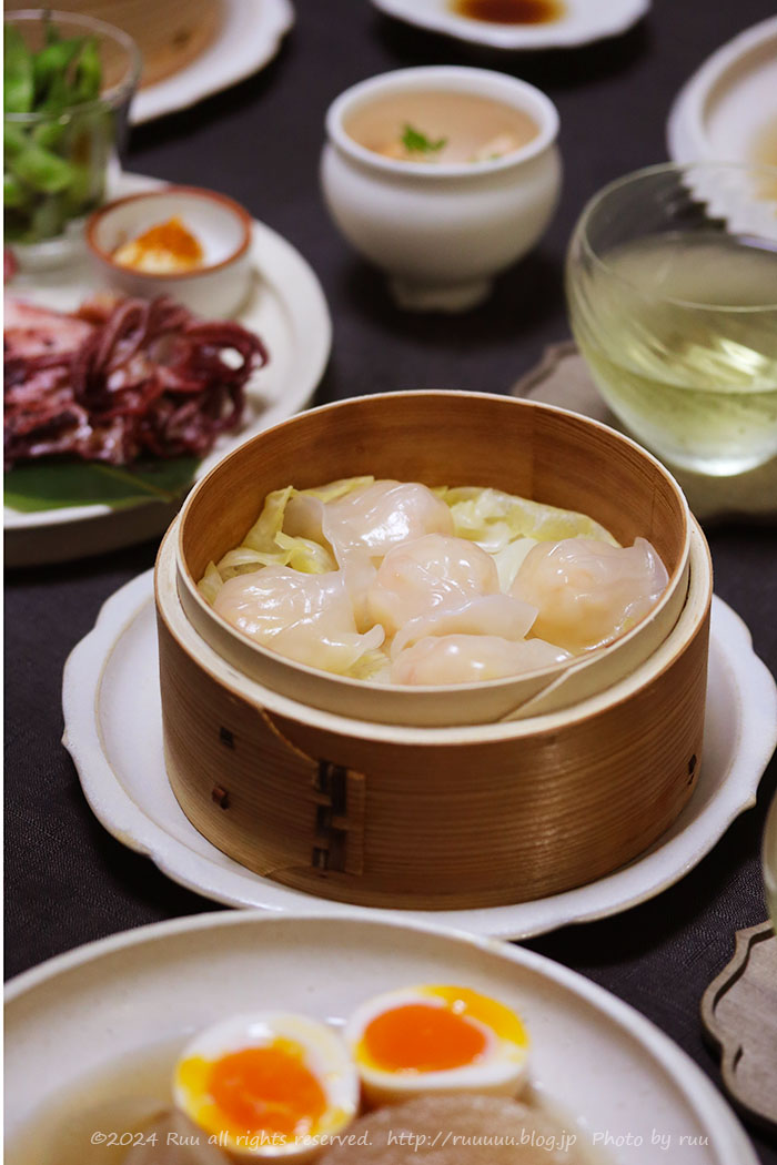 蒸篭で蒸された海老餃子は、私作!