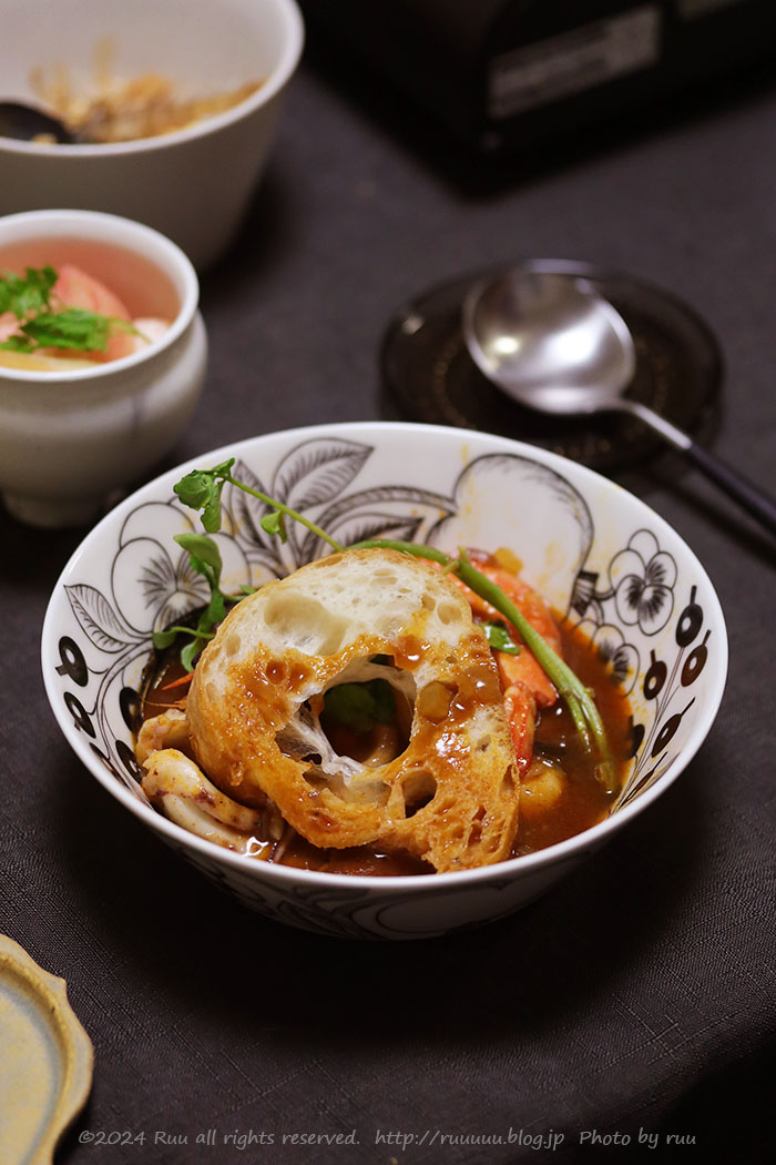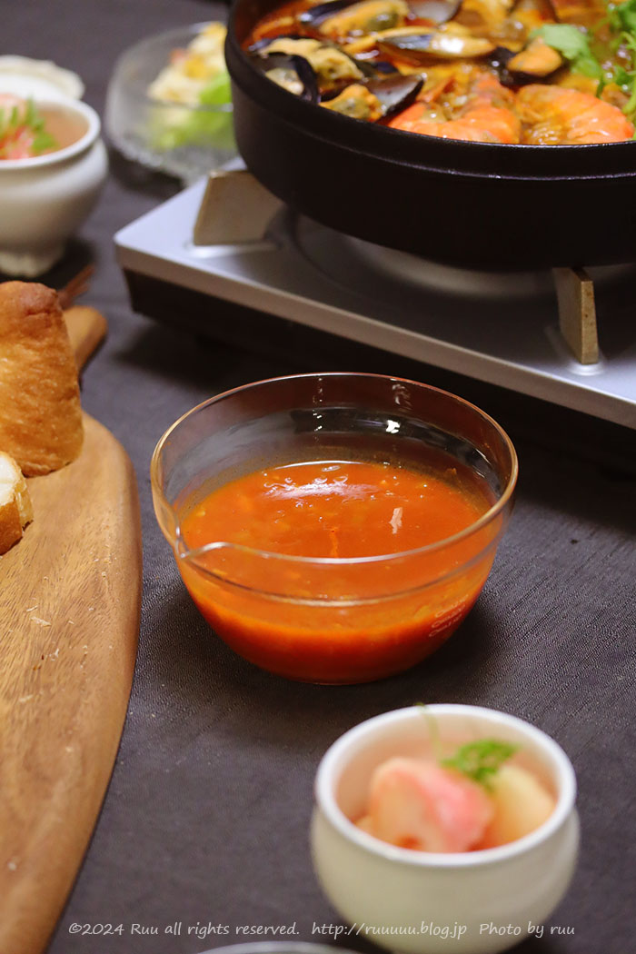 なお、ブイヤベース鍋に入れた具は、海老、いか、ムール貝、よく分からん魚たち。