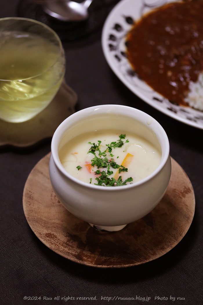 スケソウダラのすり身スティックをたっぷり使ったチャウダー。