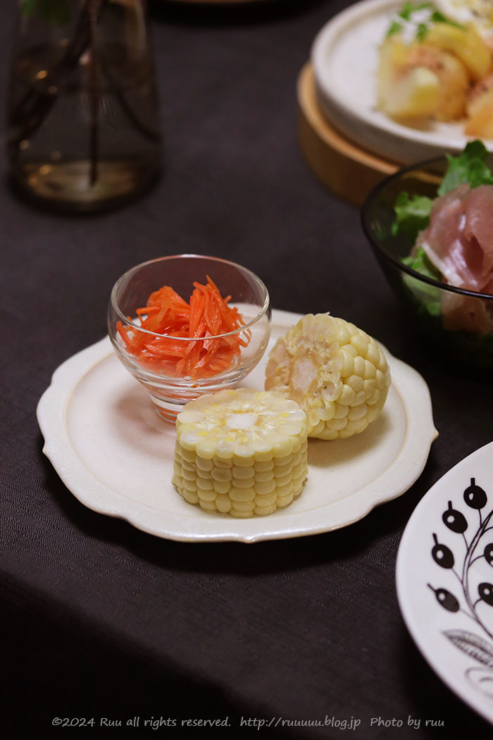 あとは、昼に茹でておいたピュアホワイトと、作り置きのラペを並べて。