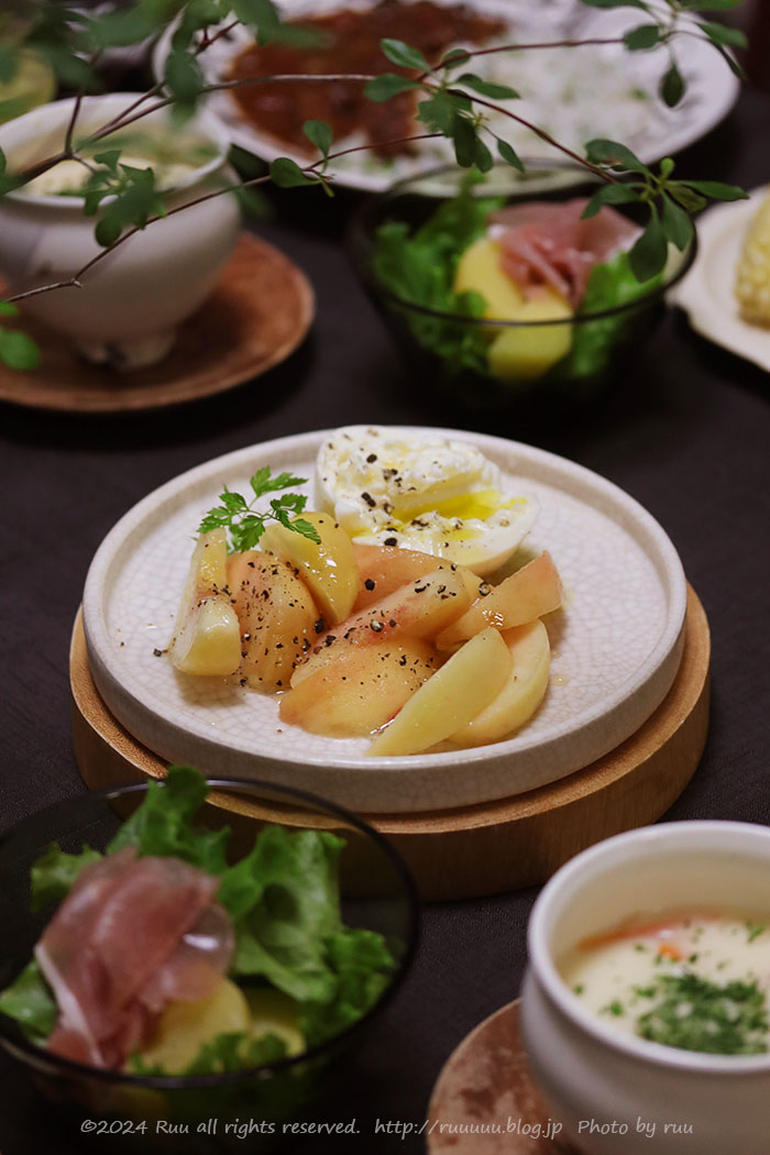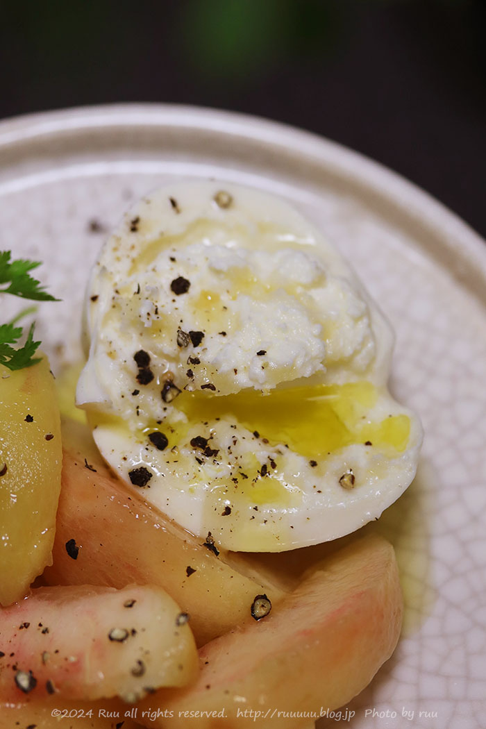 そして〆のデザートは、桃とブラータのカプレーゼ!