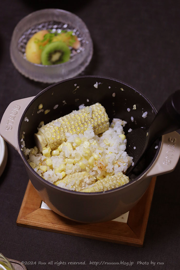 この日のメインは、ピュアホワイトを使ったとうもろこしご飯!