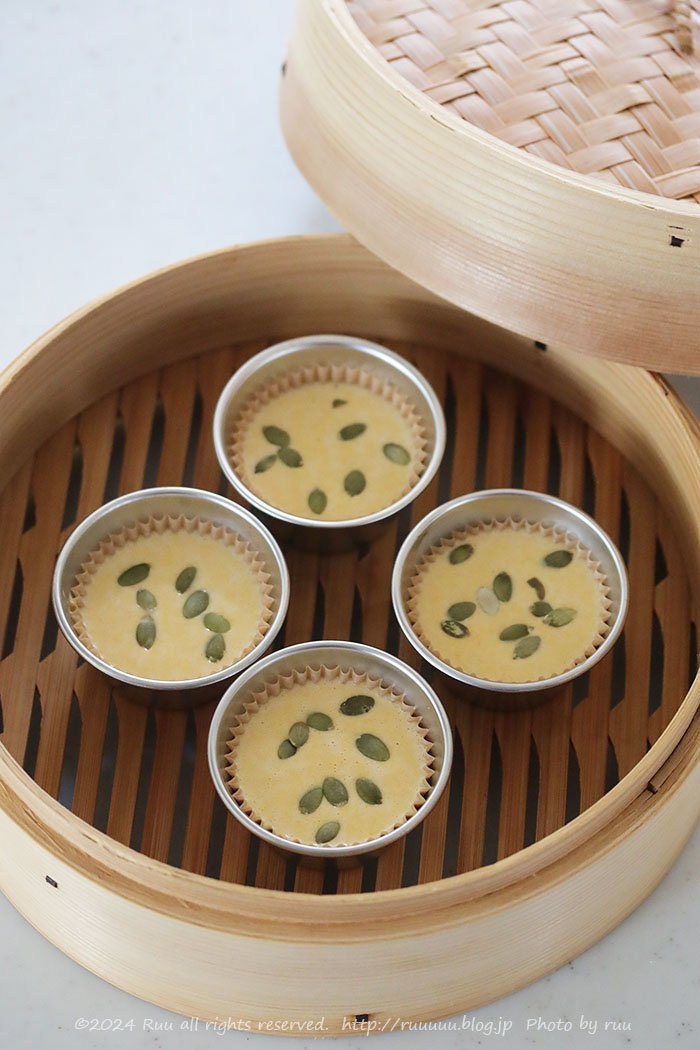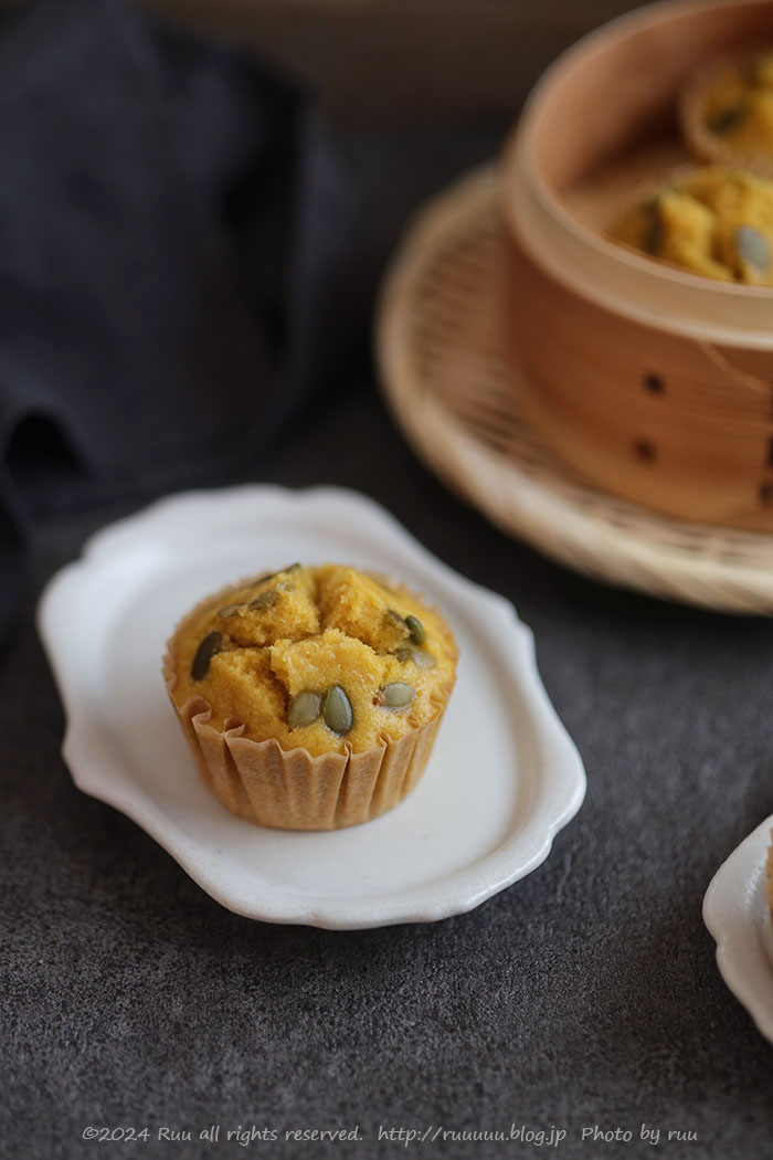 cottaさんのお仕事で作った冷めてもふわっともっちりなかぼちゃ蒸しパンです!