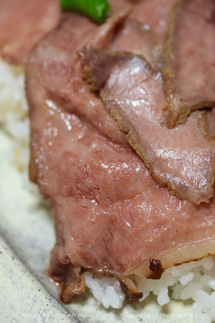 ローストビーフ丼のローストビーフ部分。