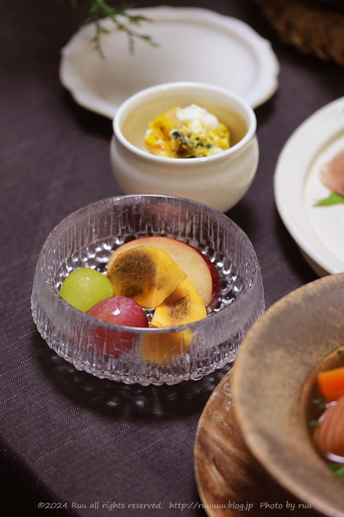 〆のデザートは、安定のりんご&シャインマスカット&に柿が仲間入り。