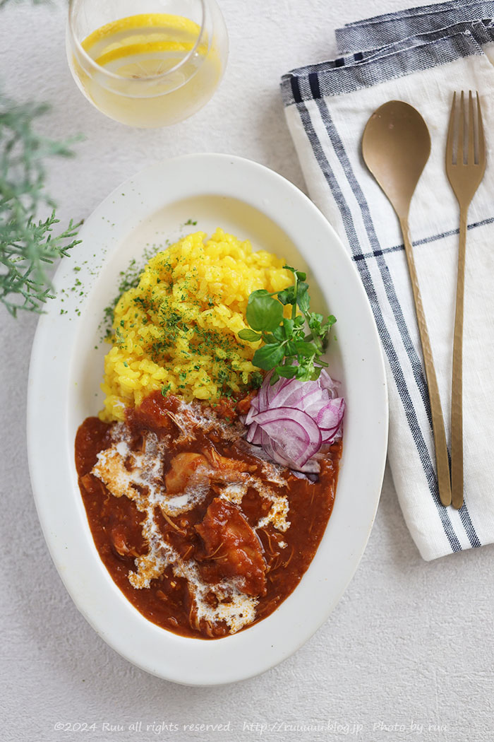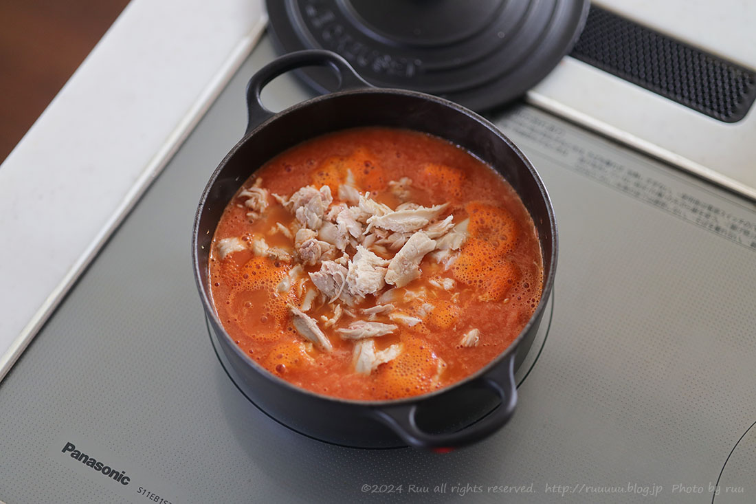 私は手軽に作りたかったので、ターキースープにトマト缶や玉ねぎ、にんにく、生姜、ほぐした骨周りのお肉を入れて軽く煮込み、カレー粉やカレールゥを加えて最後にバターをひとかけら。