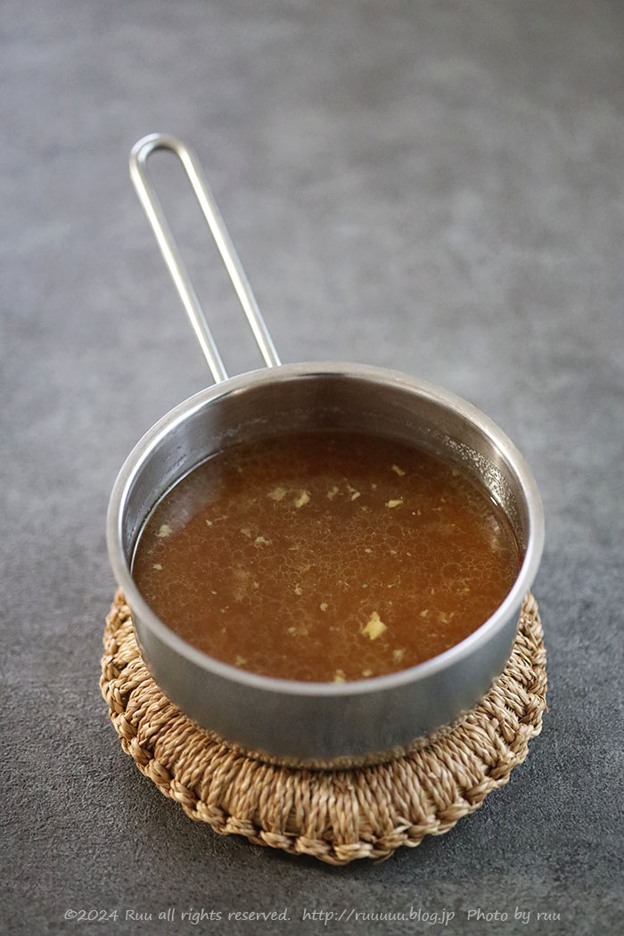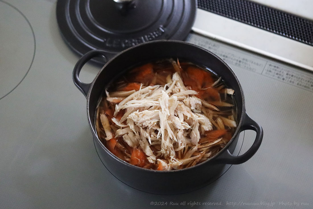 そしてこのターキースープは、お醤油や酒、塩・胡椒、みりん、和風出汁の素あたりを加えてひと煮たち。さすればラーメンスープに。