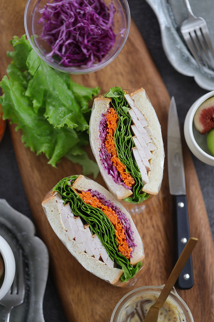胸肉はターキーの中でも最もクセがなく淡泊な味わいなので、どんなソースにも合います。ベーコンやトマトと合わせてもいいし、ジェノベーゼソースや甘辛照り焼きソースなんかとも合うし、パクチーをのせたバインミー風も美味。