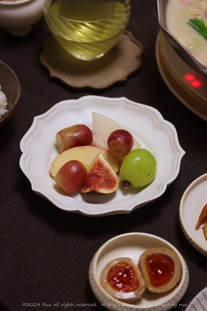 〆のデザートは、梨、りんご、いちじく、シャインマスカット、サニードルチェ。