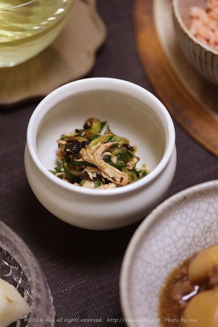 これはささみときゅうりの塩昆布和え(一番娘の好物)。