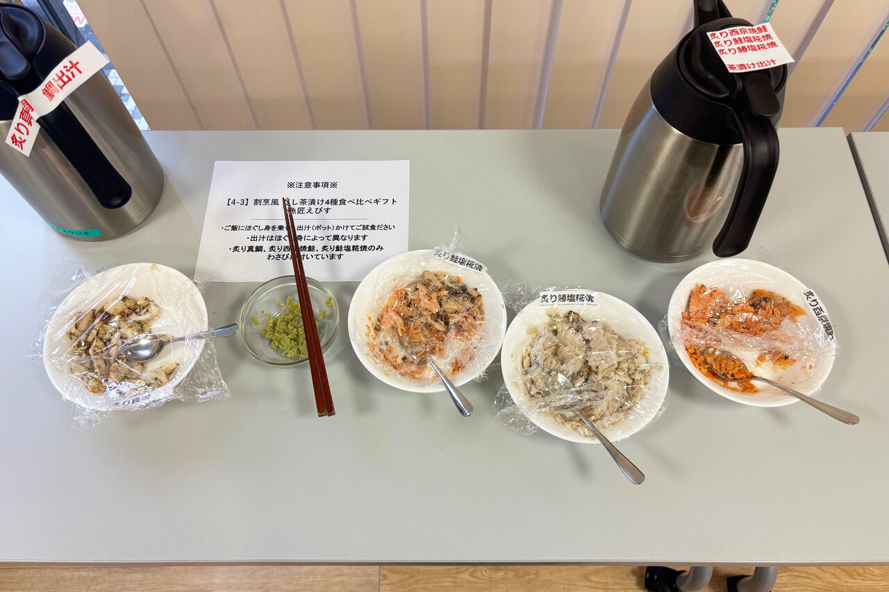 私たちは好きなだけご飯を盛って、ほぐし身をのせ、お出汁をじょぼぼぼぼーーーーっと。