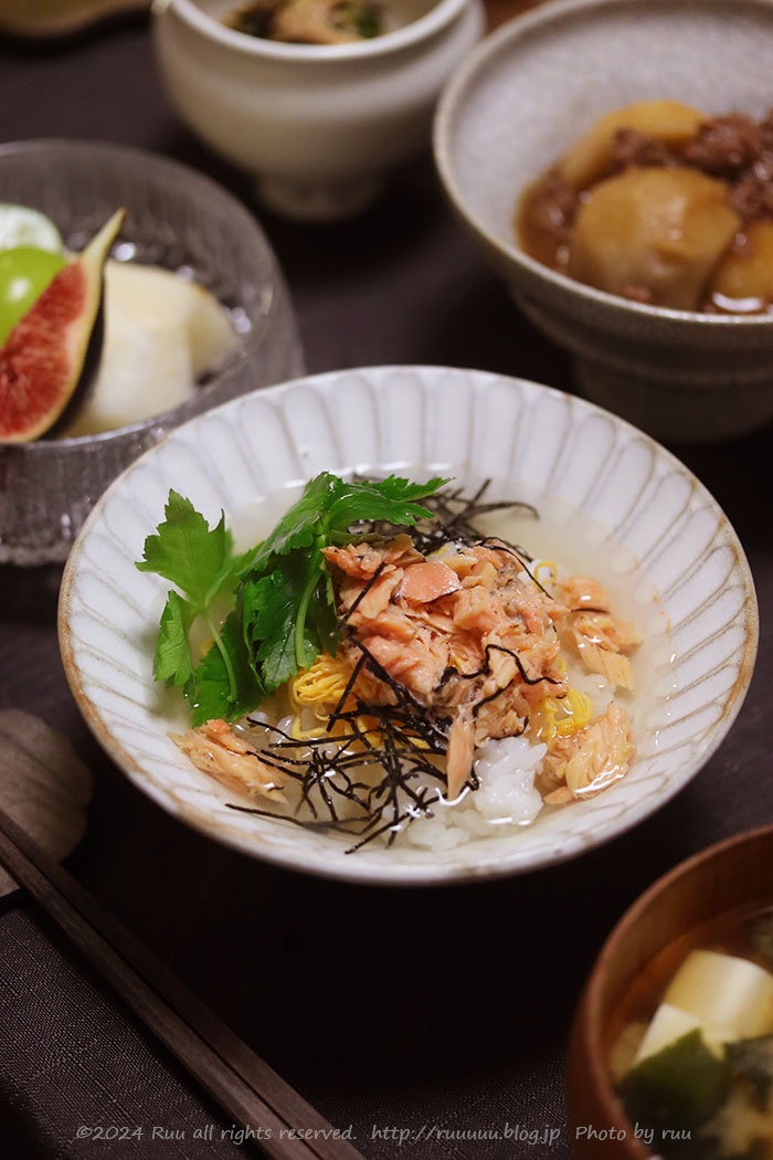 そんなこんなで、美味しいだし茶漬けを堪能した日の晩ご飯でした。