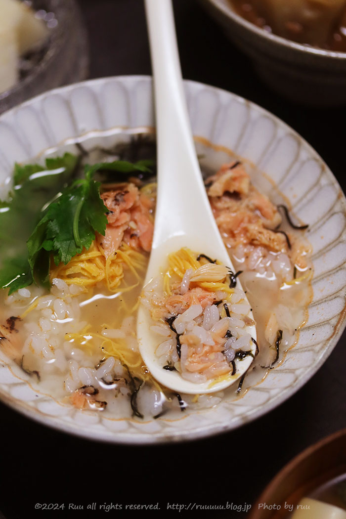 たっぷり炙り西京焼鮭をのせ、薬味ものせて、お出汁をたーーーーーっぷり!
