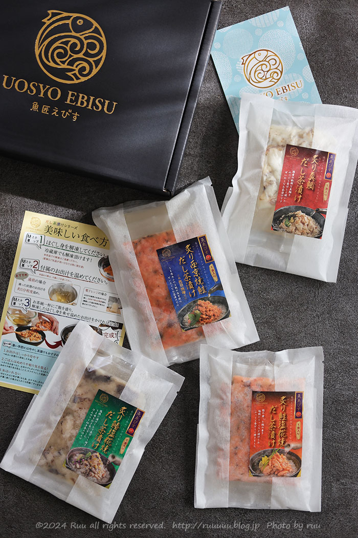 今年のお取り寄せは魚匠えびすさんの高級だし茶漬け4種食べ比べギフトセットに。