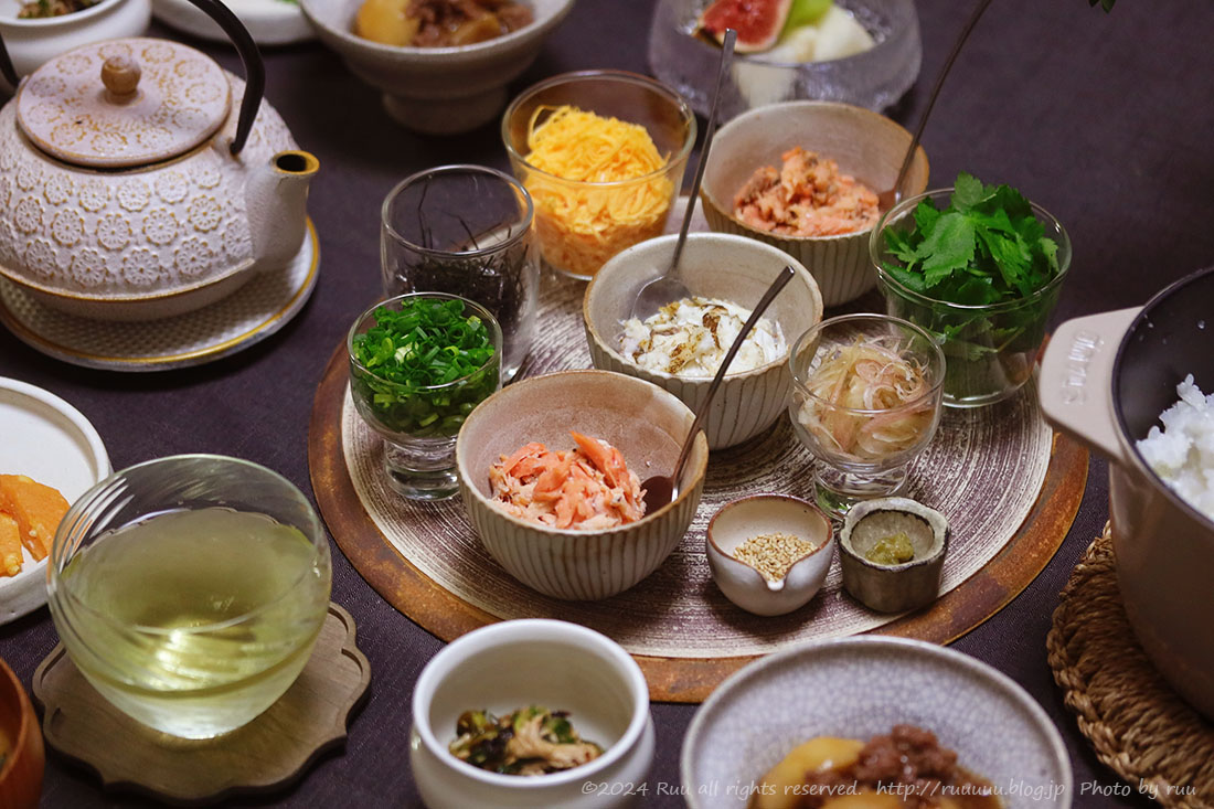 お茶漬けなので、薬味もいろいろ準備してみました。