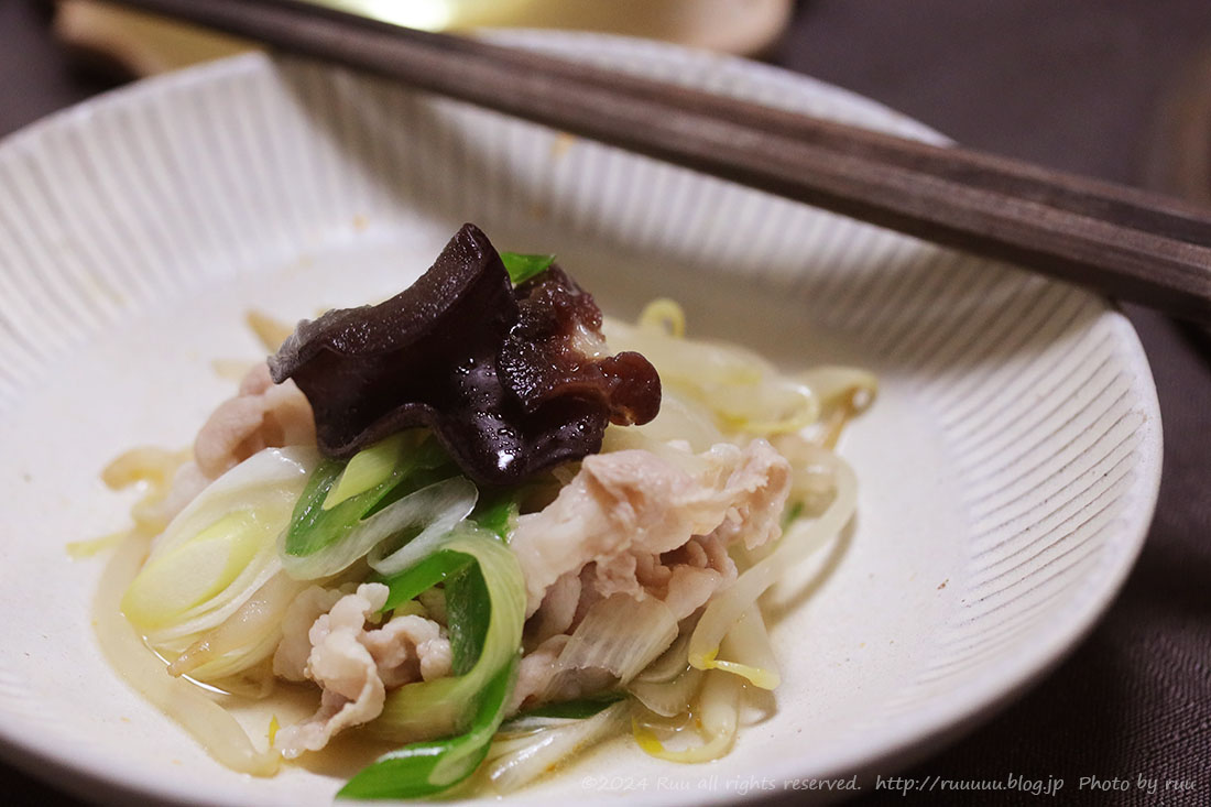 そして野菜は、安定のもやし、斜め薄切りのネギ、油揚げ、大量のきくらげ。
