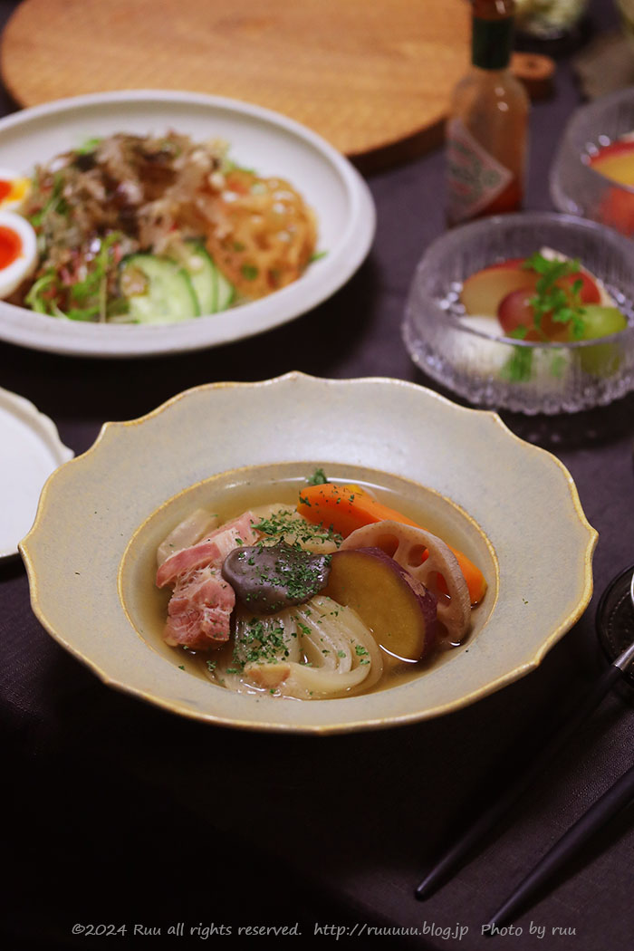 ポトフを食べてる間に「ああ、これもよかったら」風にサラダも配置。