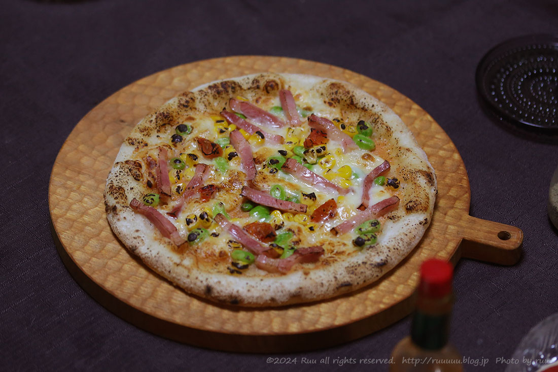 そんな様子を横目で見つつ、ピザを焼き、底面がパリっとしたら、