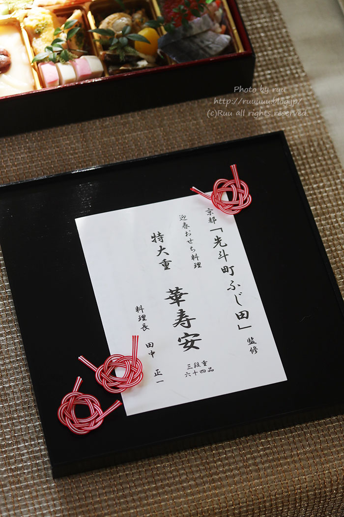 奇遇にも、去年も同じ「先斗町ふじ田」さん監修のおせちをいただいてるので、