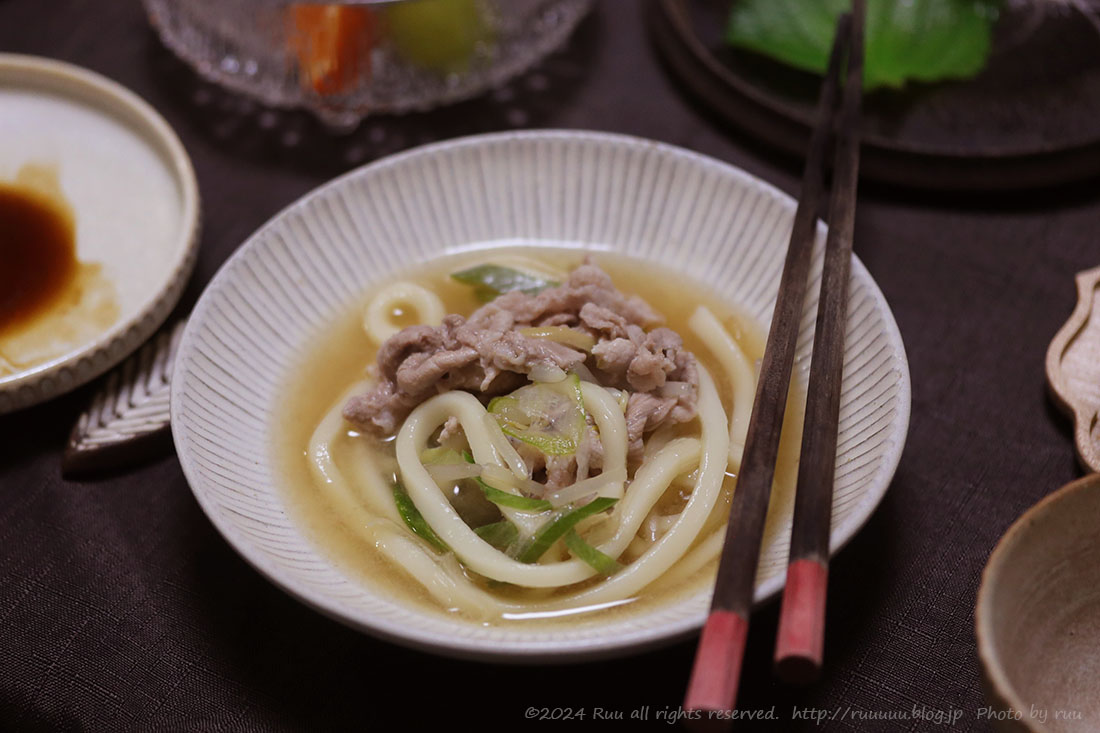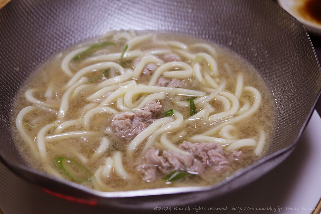 ちょっとだけ残ってたお肉や長ネギも入れて、肉ネギうどん。
