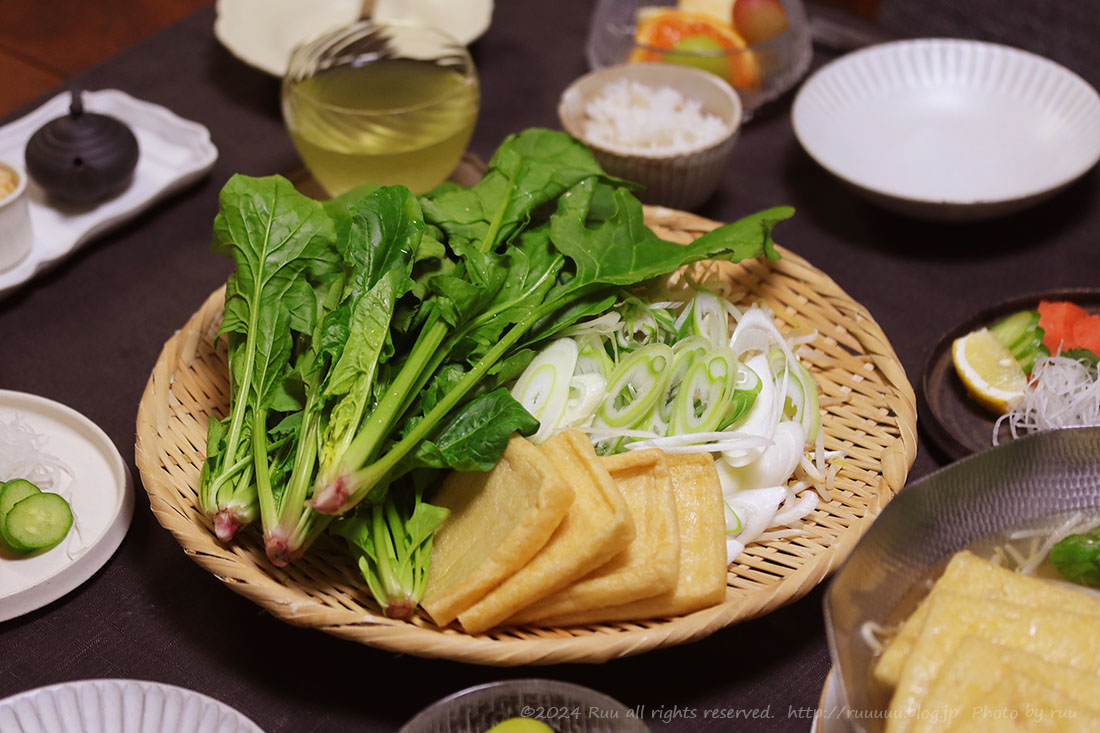 この日のメインは、たっぷりほうれん草を使った常夜鍋でごぜえます。
