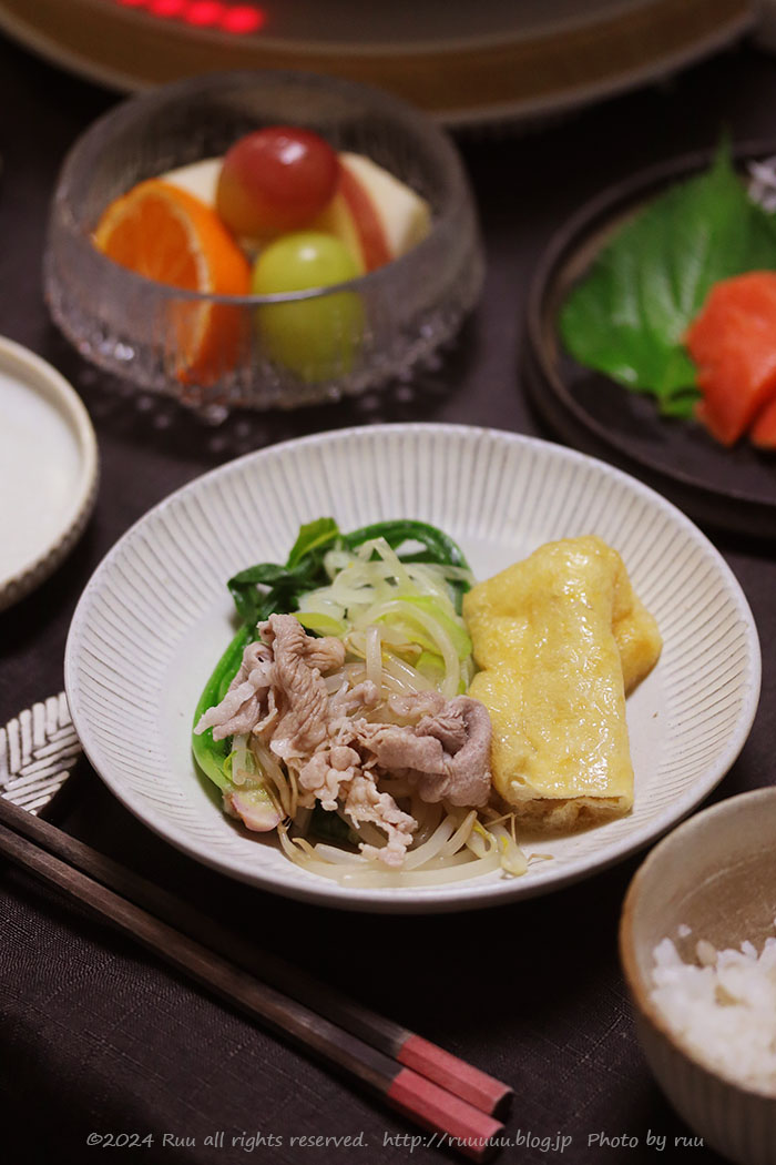 お肉はしゃぶしゃぶ用の豚肉、もとい大好きすぎる原信の超薄切り肉を買ったので、