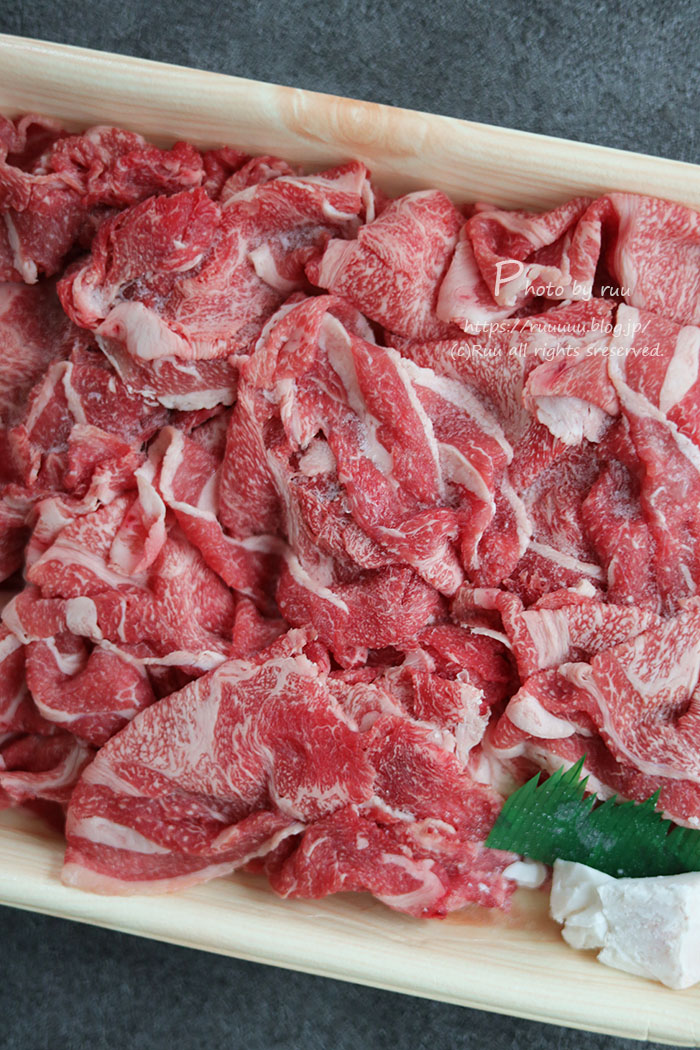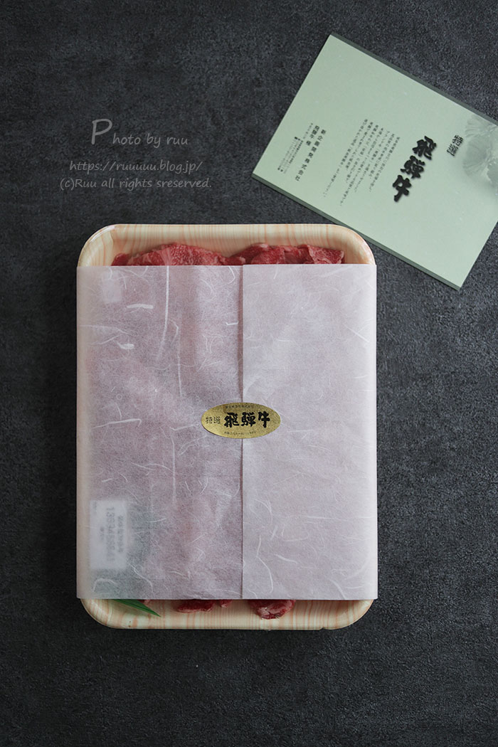 切り落としにしてはそこそこよい値段ですが、実はこの切り落とし、元々、ホテルの会席料理に使ってる飛騨牛肩ロースからとった切り落とし。