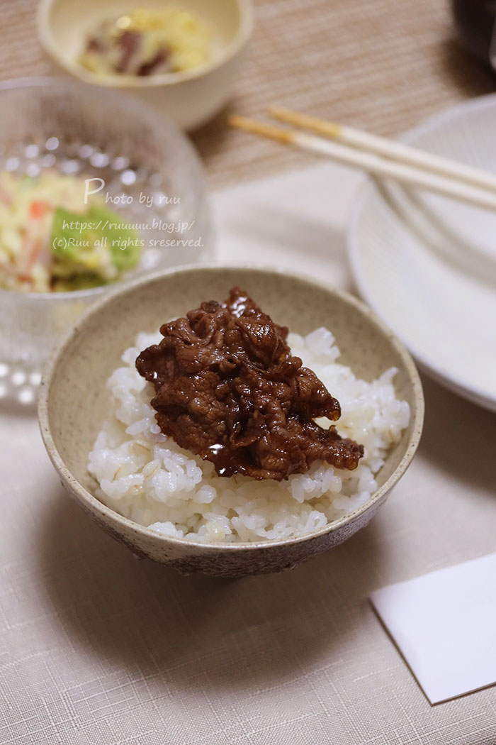甘辛肉+白ご飯の相性は言わずもがな。
