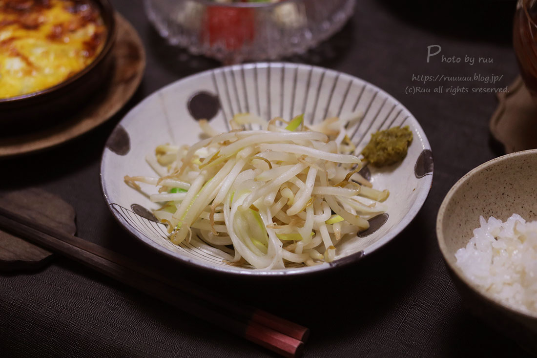 私の皿には、安定のもやし&柚子胡椒。