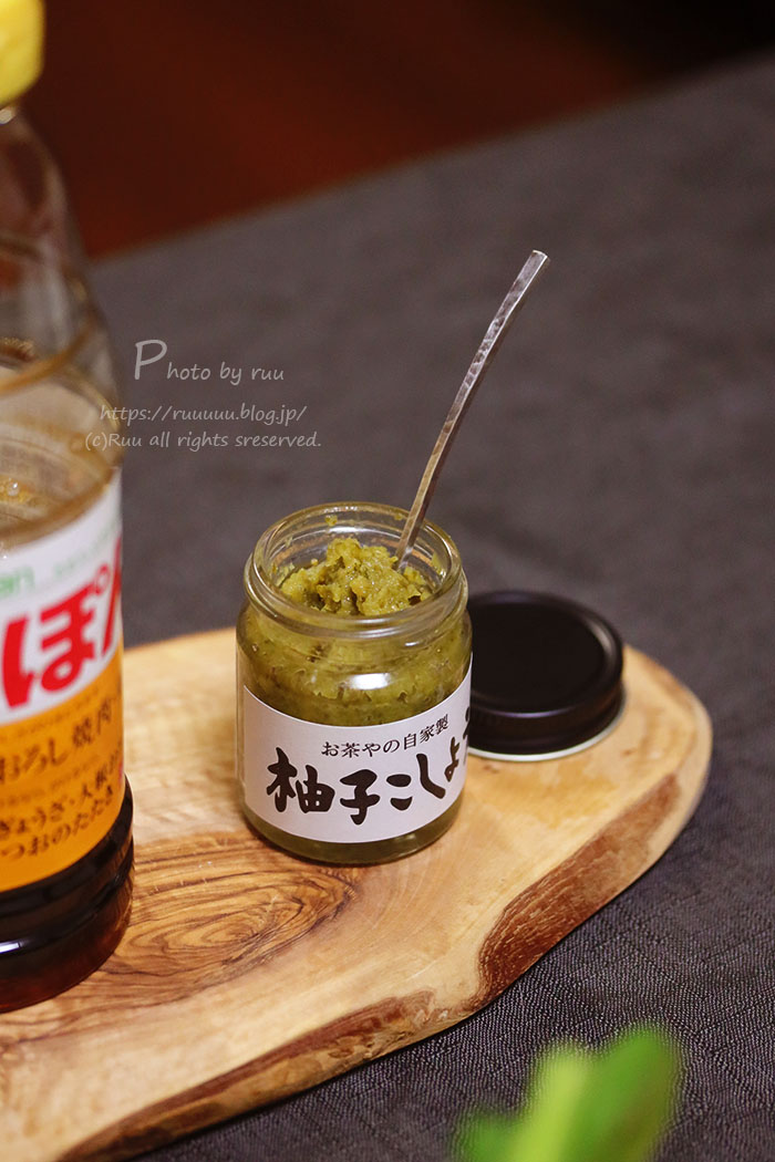 今まで使ってた柚子胡椒に比べると、柚子の香りが各段によく、めっちゃ爽やか~。