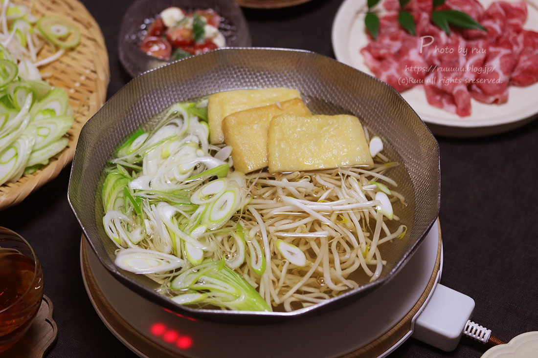 で、この日の野菜は、もやし、長ネギ、油揚げ、ほうれん草。
