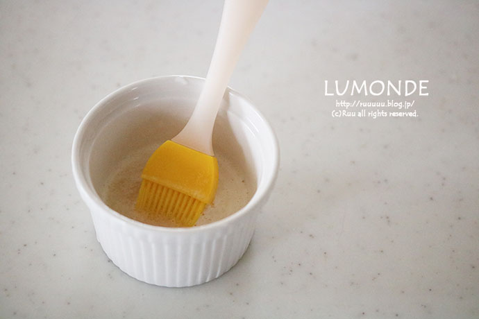 4:アルミホイルやクッキングシートなとの上に置き、溶かしバターが余っていれば塗る。