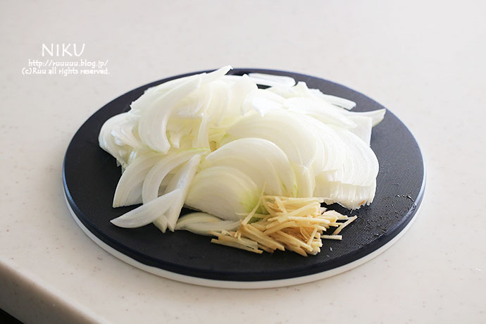 1:玉ねぎはスライスし、生姜は千切りにする。
