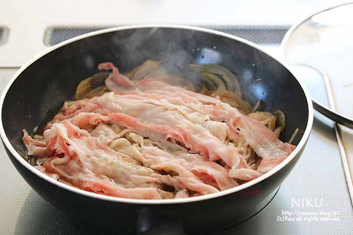 3:豚肉を広げながら入れる。
