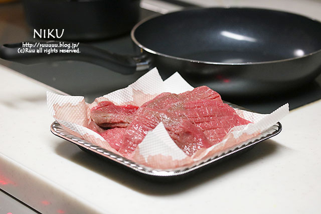 4:お肉は、焼く30分前には冷蔵庫から出して、常温に戻しておく。