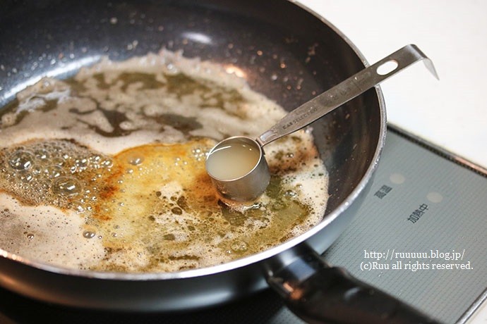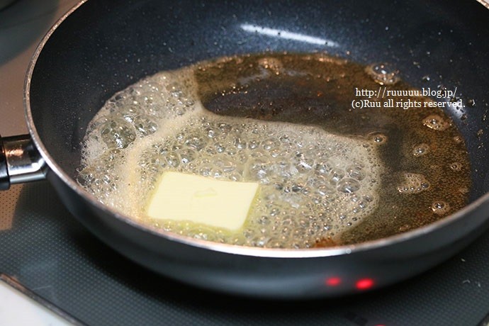 5:バターが溶けたらレモン汁を入れ、火を止める。