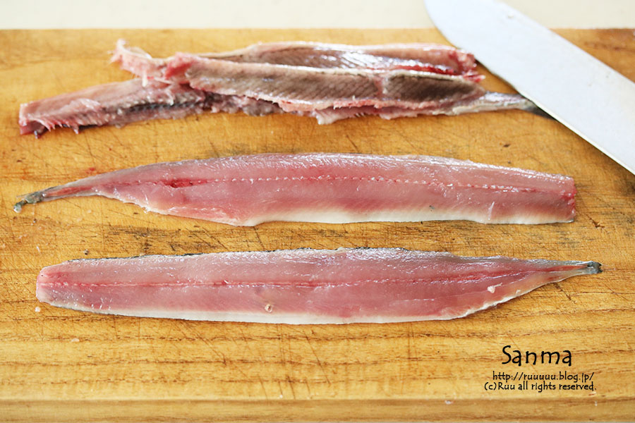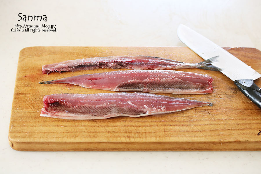 三枚におろして。