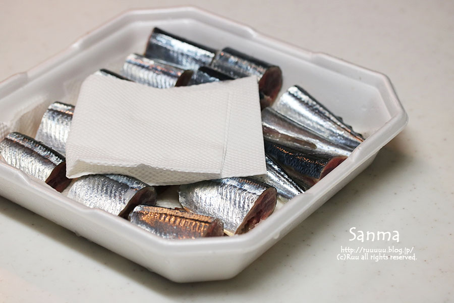 3:秋刀魚に塩をふって15分ほど置き、キッチンペーパーで水気を拭き取る。